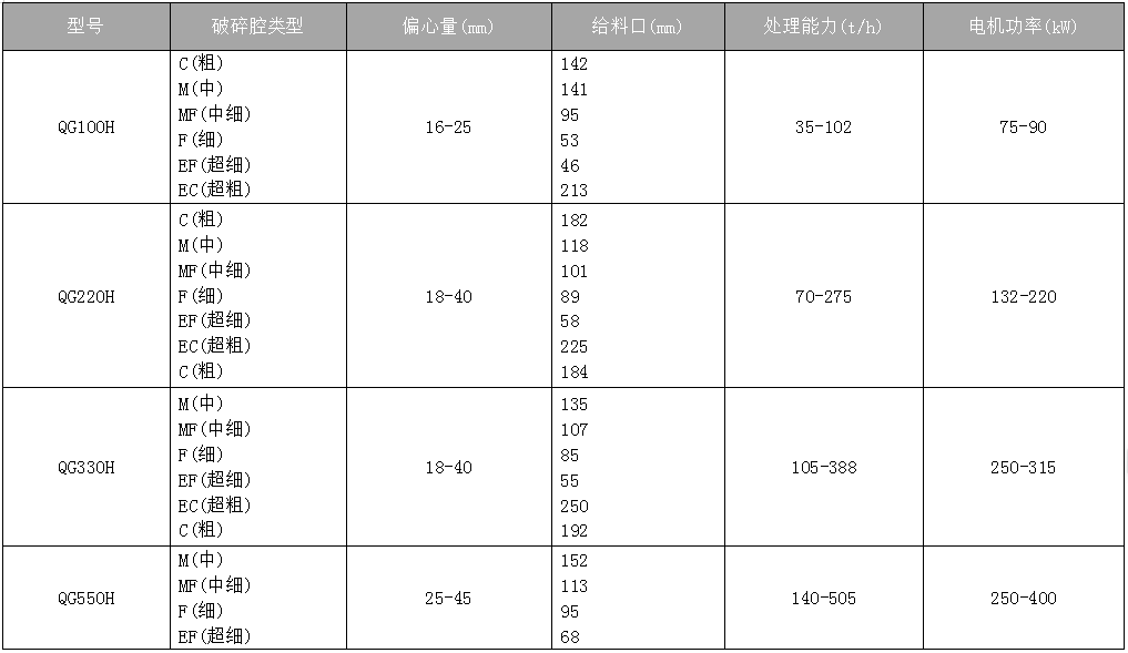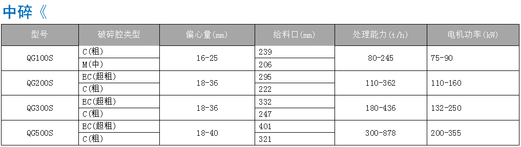 QG 系列單缸圓錐破碎機具有高破碎率、 高 質 量 和 運 行 穩 定 特 能 夠 一 機 多 適 用 各 種 工 況 及 破 碎 物 可 滿 碎 、 細碎及超細碎的破碎要求 , 針對河卵石 破碎可直接做粗級破碎使用